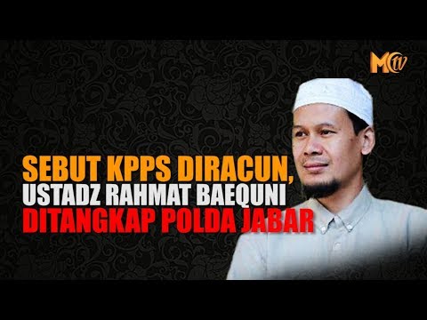 VIRALNYA VIDEO USTADZ RAHMAT BAEQUNI YANG MENYEBUT RATUSAN PETUGAS KELOMPOK PENYELENGGARA PEMUNGUTAN SUARA YANG MENINGGAL KARENA DIRACUN, BERUJUNG PADA PENANGKAPAN DIRINYA OLEH ARAPAT KEPOLISIAN JAWA BARAT. DIKABARKAN, USTAD RAHMAT DITANGKAP DIKEDIAMANNYA PADA KAMIS (20 JUNI 2019) SEKITAR PUKUL 23.00 WIB USAI MENGISI CERAMAH DI MASJID AL ...
