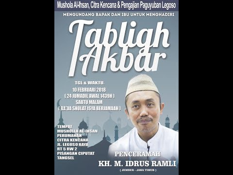 Pengajian bersama KH. , Muhammad Idrus Ramli, (Pimpinan NU Garis Lurus), beliau merupakan seorang Kyai dari Jember, Jawa Timur. Pengajian ini dilaksanakan dalam rangka Pengajian Paguyuban Legoso. Yang mana anggota Pengajian Paguyuban Legoso terdiri dari 14 Musholla dan Masjid sekitar Jl. Legoso Raya, Ciputat Timur. Semoga pengajian ini bisa menjadi asab ...